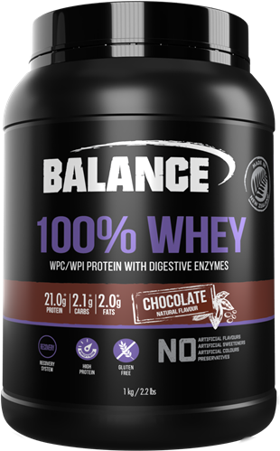 Balance 100% Whey is a high protein, gluten free blend with added digestive enzymes. It contains New Zealand sourced whey protein concentrate and whey protein isolate. The whey proteins have been produced by ultra-filtration to retain their natural state helping you meet the heavy demands of training. Whether your priority is building lean muscle, improving recovery or both, this superior tasting protein blend is scientifically developed to enhance your sports nutrition needs.