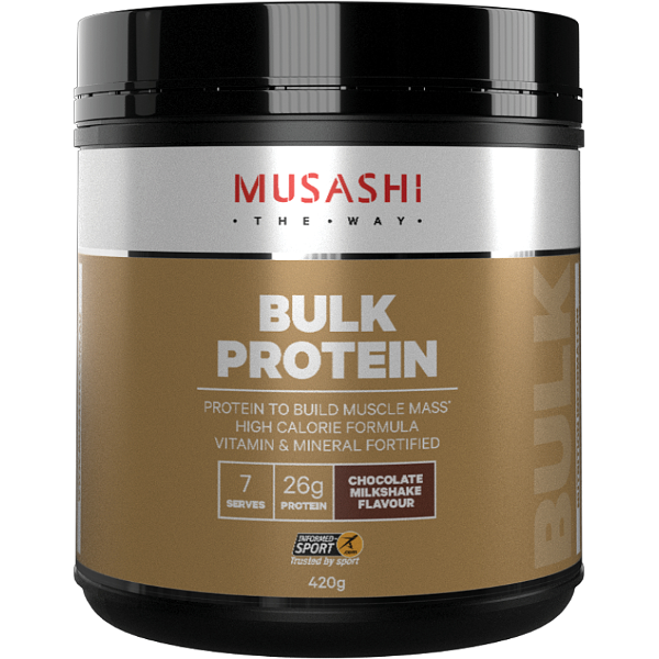 MUSASHI BULK PROTEIN is a scientifically formulated nutritional supplement for body builders and athletes looking to maximise muscle growth and replenish glycogen stores. This high performance formula consists of premium grade multi-source protein and readily absorbed carbohydrate blend. Fortified with vitamins, minerals, and is boosted with naturally occurring essential amino acids (EAAs) and branched chain amino acids (BCAAs).