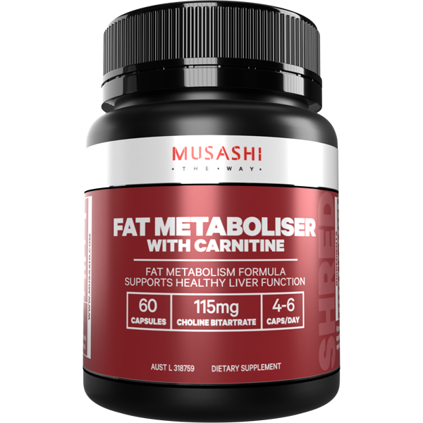 MUSASHI FAT METABOLISER with CARNITINE has been developed to assist the metabolism of stored fat when used in conjunction with a healthy diet and active lifestyle. Choline is an essential nutrient which plays an important role in fat metabolism and helps support healthy liver function.