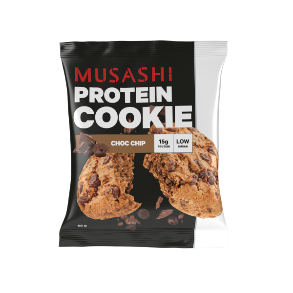 MUSASHI PROTEIN COOKIES are loaded with 15g of quality protein, low in sugar, filled with delicious choc chunks and have a ‘melt in your mouth’ soft bake texture, guaranteed to fulfil that sweet craving. Great for your protein hit post-workout, or as an easy snack on the go.