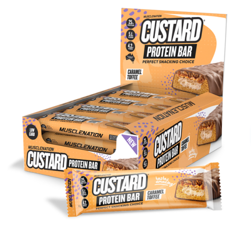 The Custard filled centre in Muscle Nation Custard Protein Bars are made from Muscle Nation Custard Casein Protein powder.
