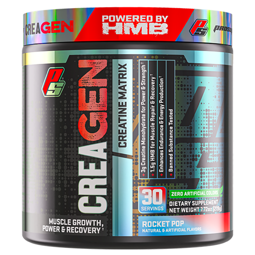 Pro Supps CreaGEN is the only strength and recovery supplement that combines the power of Creatine with Betaine and β-Hydroxy β-methylbutyric acid (HMB) to help take your training to the next level. Creatine is the most studied supplement on the market today and is proven to increase strength and muscle mass. Creatine and Betaine work synergistically to increase bioavailable creatine, which supports cellular energy, strength and power output during resistance exercise. Obviously, we couldn’t stop there! HMB, a metabolite of the amino acid leucine enhances recovery by helping prevent muscle breakdown. CreaGEN is the perfect product for anyone looking for a quality creatine supplement to help increase their athletic performance.