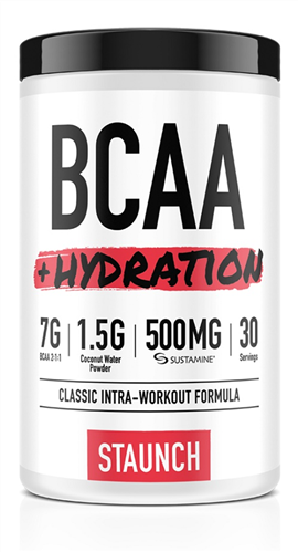 Staunch BCAA + Hydration really sets itself aside from the competition by providing the most advanced hydration complex combined with the most delicious flavors. BCAA + Hydration features 1.5 grams of coconut water powder, 7 grams of BCAA 2:1:1 and 500 mg of Sustamine to keep you re-hydrated and re-energize yours muscles! Try Staunch BCAA + Hydration's ridiculously delicious flavors and taste its goodness.