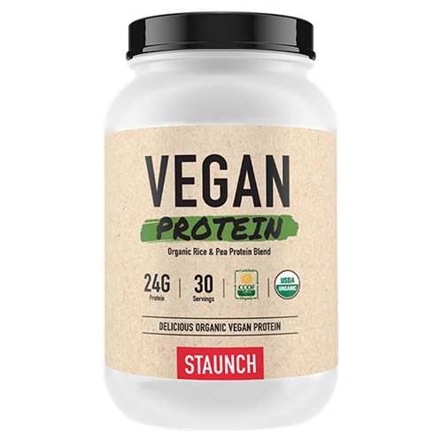 Staunch Vegan Protein is certified Organic and 100% vegan. WE use a mixture of rice and pea protein along with natural organic flavours and organic stevia for sweetness. Available in chocolate and vanilla, our vegan protein tastes amazing and contains a macro profile to die for.